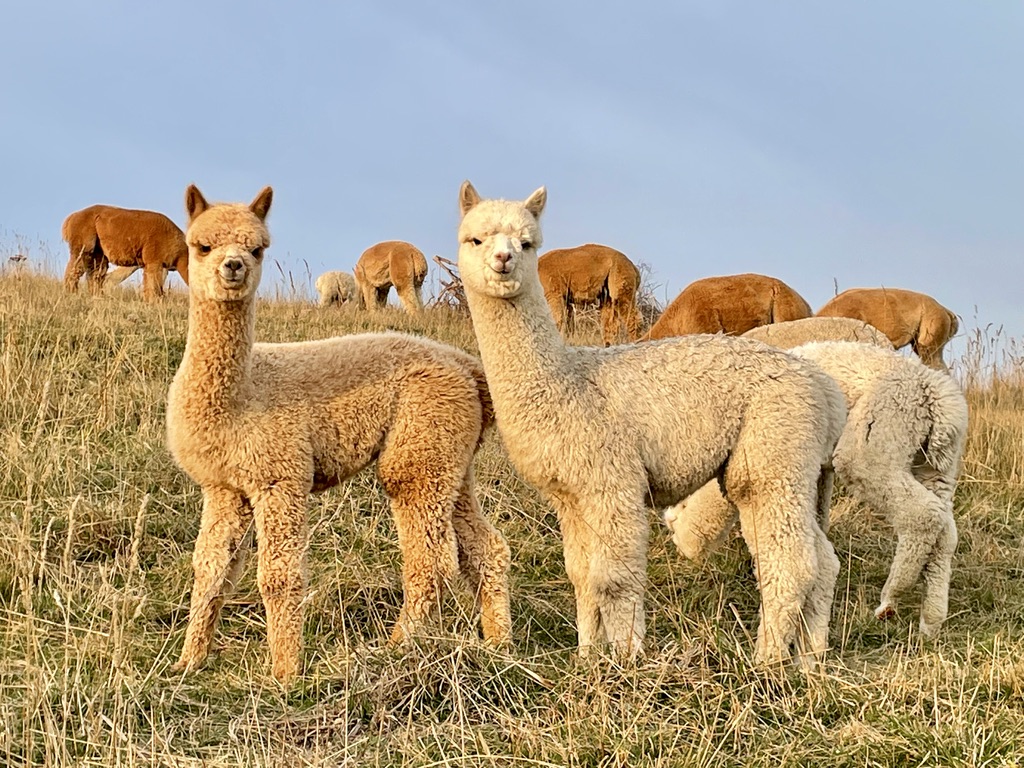 Alpaca are thought to have evolved from the wild vicuna and are generally smaller than the llama standing at just under a metre at the shoulder. They produce a wonderful, heavy fleece of fine strong fibre that comes in 22 basic colours including whites, fawns, browns, blacks and greys. A fully fleeced alpaca with good coverage around the face and legs is an extremely beautiful and captivating animal and a good reason why so many farmers and lifestyle block holders have entered the industry. Alpaca are easy to handle and make delightful companions. Alpaca fibre is world renowned for its soft handle and lustre and is often compared to fine merino and cashmere.